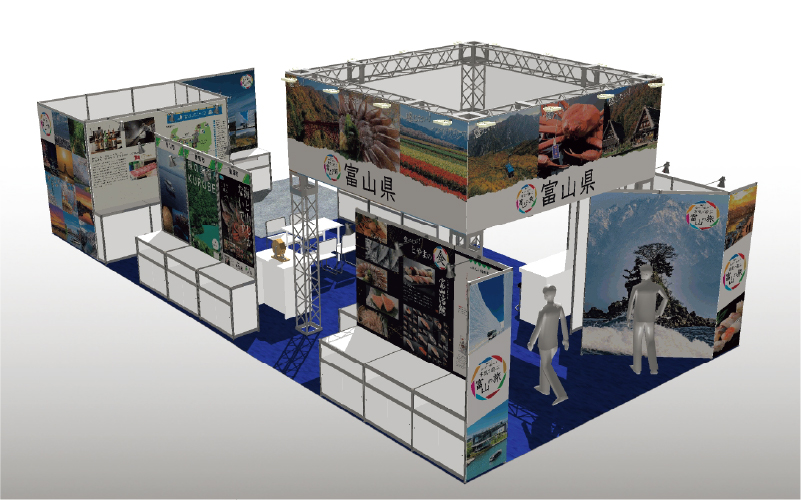 富山県を紹介するブースの設営を行いました。