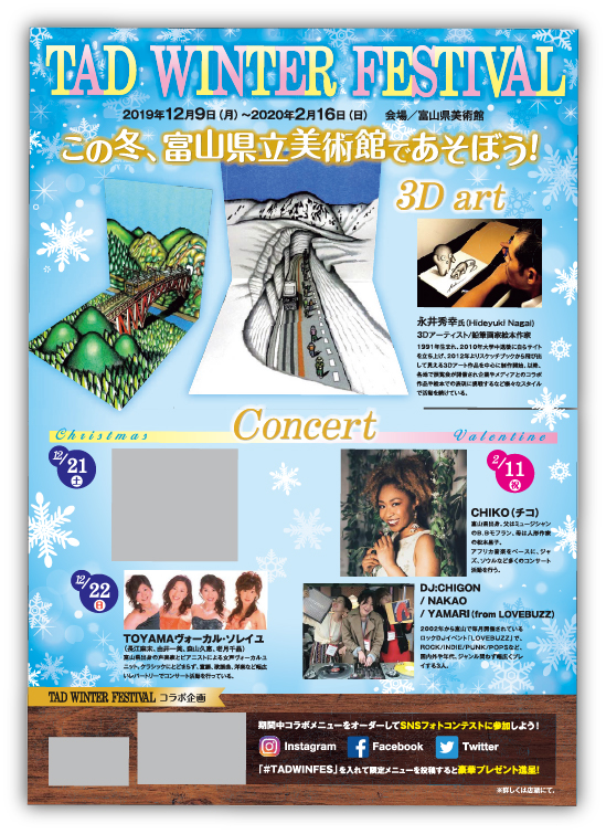 富山県美術館の3Dアートイベントの作品を制作いたしました。2Dだけでなく、錯覚を活かした3Dな見せ方も出来ます!